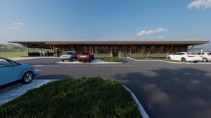 • Une volumétrie épurée et lisible, à la croisée entre bâtiment agricole et commerce moderne.